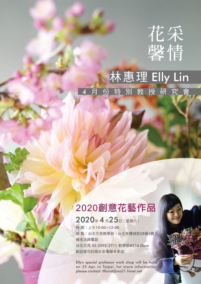 Elly's special professor work shop will be hold on 25 Apr. in Taipei, for more information please contact: tflorist@ms21.hinet.net