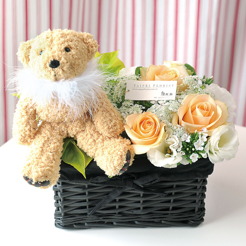 珍藏禮盒系列 香檳玫瑰小熊花禮...